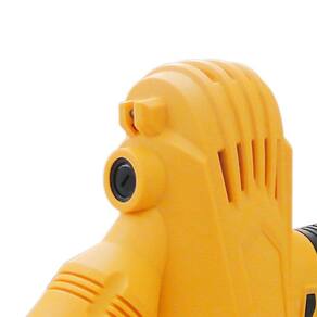 Possui lanterna de led, acionamento elétrico, sistema de fixação das lixas com fecho, que permite colar e descolar rapidamente, proteção removível da lixa, permitindo acessar quinas, sistema de mola que permite melhor ergonomia ao lixar superfícies, pega mão em borracha macia para maior conforto e ergonomia e 4 m de cabo elétrico em PVC para ligar a máquina.