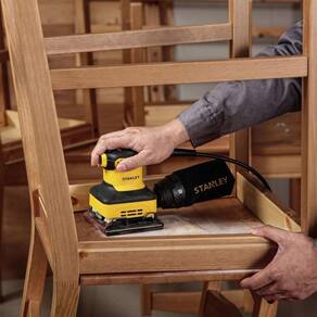 A Lixadeira Orbital 1/4" 2 40W 220V SS24-B2 Stanley é equipada com corpo e empunhadura emborrachados, proporcionando maior conforto e ergonomia durante o uso.