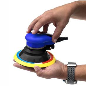 CARACTERÍSTICAS: Base do disco com fecho aderente Consumo de ar médio: 9pcm Entrada de ar padrão: 1/4pol Rotação sem carga 10000rpm Diâmetro do disco 6pol 150mm Diâmetro da órbita: 3/16 (5mm) Pressão de trabalho 6,5kg/cm² 90psi