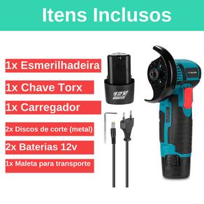 Voltagem da bateria: 12v Capacidade da Bateria: 1500mAh Velocidade sem bloqueio: 19.500rpn Rosca do eixo de moagem: M5 Diâmetro do furo: 10.0mm Velocidade nominal: 10000/min Diâmetro máximo: 76mm Itens Inclusos: