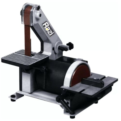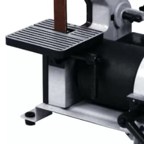 (monofásico) Frequência: 60Hz Potência do motor: 300W Rotação (sem carga): 3450rpm Dimensões da lixa: diâmetro 127mm Dimensões da cinta de lixa: 25,4x760mm Dimensões das mesas de trabalho: 125 x 125mm e 178 x 126mm Ajuste das mesas: 0 a 45° Peso: 8,5kg
