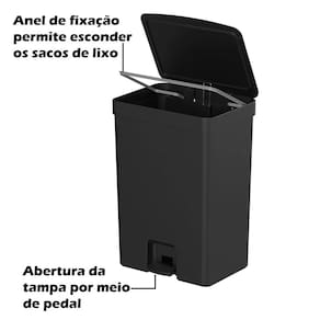 A Lixeira Trium 30L é a solução completa para simplificar a sua rotina com limpeza e organização. O anel de fixação permite esconder os sacos de lixo para manter a beleza do ambiente. Possibilita a abertura com o pé ou com a mão, para facilitar a realização das tarefas diárias. Produzida com material de alta qualidade e acabamento fosco, a lixeira garante a estabilidade e resistência necessária para o dia a dia. Seu design moderno e minimalista combina com diversos ambientes e estilos de decoração. Limpeza, bem-estar e organização para a sua casa com as Lixeiras Trium.