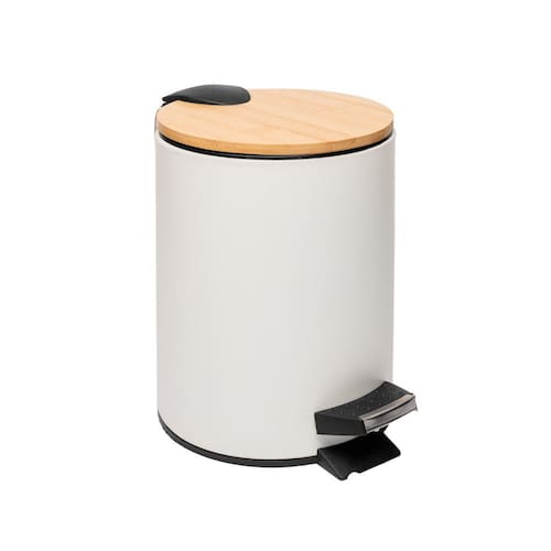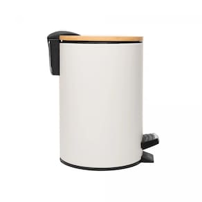 Lixeira 3L Redonda de Metal com Pedal e Tampa em Bambu Branca Lyor