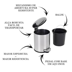 Lixeira 5 Litros Aço Inox Com Pedal Cesto Removível Mimo Lixeira Cesto De Lixo Banheiro Cozinha Pia