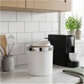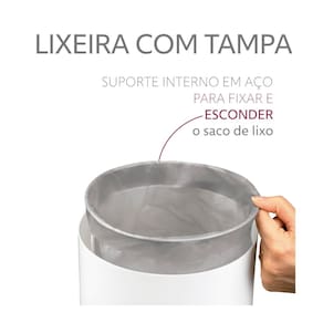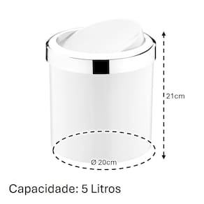 Na lixeira 5 litros com tampa basculante, nenhuma parte do saquinho de lixo fica aparente graças ao seu aramado interno que prende e esconde o saquinho ou a sacola de lixo, e é muito fácil de trocá-los para fazer o descarte do lixo. A lixeira possui um tamanho perfeito para ser usada no escritório, no banheiro ou até mesmo na cozinha.
