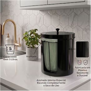 Na Lixeira com Tampa nenhuma parte do saquinho de lixo fica aparente, graças ao aramado interno que prende e esconde o saquinho ou a sacola de lixo, e é muito fácil de trocá-los para fazer o descarte do lixo. A lixeira possui um tamanho perfeito para ser usada no escritório, no banheiro ou até mesmo na cozinha.