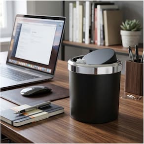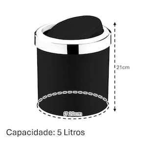 Na lixeira 5 litros com tampa basculante, nenhuma parte do saquinho de lixo fica aparente graças ao seu aramado interno que prende e esconde o saquinho ou a sacola de lixo, e é muito fácil de trocá-los para fazer o descarte do lixo. A lixeira possui um tamanho perfeito para ser usada no escritório, no banheiro ou até mesmo na cozinha.