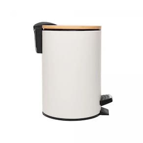 Lixeira 5L Redonda de Metal com Pedal e Tampa em Bambu Branca Lyor - MedidasMedidas (Diâm. x alt.): 20,5 x 25,5 cm