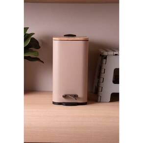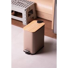 Lixeira 5L Retangular de Metal com Pedal e Tampa em Bambu Bege Lyor - MedidasMedidas (compr. x larg. x alt.): 28 x 14 x 28 cm