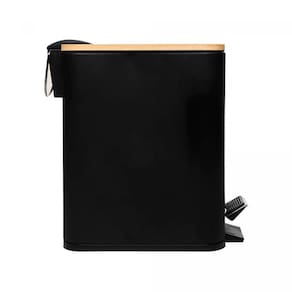 Lixeira 5L Retangular de Metal com Pedal e Tampa em Bambu Preta Lyor - MedidasMedidas (compr. x larg. x alt.): 28 x 14 x 28 cm