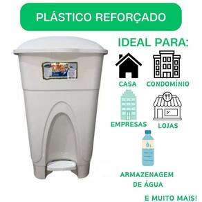 Características - marca: injeplastic - modelo: 65 lts - material: plástico - cor: branco - com pedal reforçado para abrir a lixeira - não enferruja