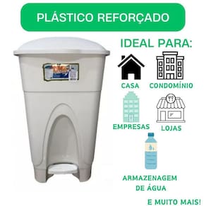 Características - marca: injeplastic - modelo: 65 lts - material: plástico - cor: branco - com pedal reforçado para abrir a lixeira - não enferruja