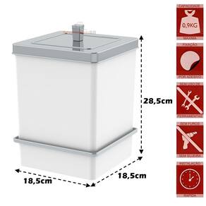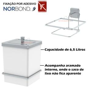 01 - Lixeira Quadrada 6,5 Litros Com Suporte de Fixação Adesiva