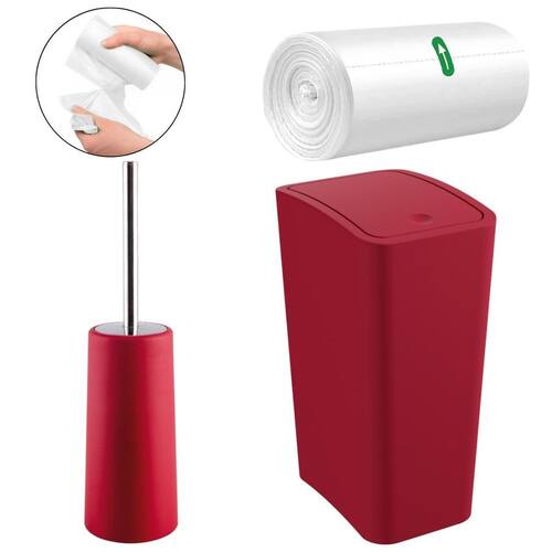 Lixeira 8L Tampa Click Vermeha + Escova Sanitária + 70 Sacos