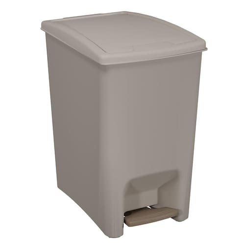 Capacidade de 10 litros. Aro interno que permite que a sacola plástica não fique aparente. Compacta: cabe em ambientes pequenos. Produção nacional. Possui duas formas de abertura da tampa: pedal e botão de pressão na parte superior.