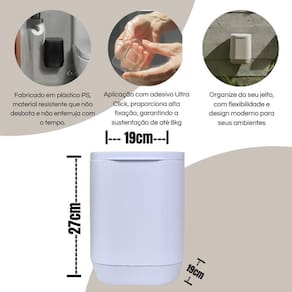 Lixeira Elevada Para Piso/Parede com Tampa Amortecedora - 6L Suspensa, Instalação Sem Furo A Lixeira Suspensa Aura Prática 6L é a solução ideal para quem busca praticidade, higiene e otimização de espaço. Com design moderno e funcional, pode ser instalada na parede ou utilizada no chão, adaptando-se facilmente a diferentes ambientes. Sua instalação é simples e segura, sem a necessidade de furos, graças ao sistema de fixação autocolante de alta aderência. Benefícios: Economia de espaço: Pode ser fixada na parede, deixando o piso livre e facilitando a limpeza do ambiente. Instalação prática e sem danos: A fixação autocolante evita furos em paredes ou móveis, garantindo um processo rápido e sem sujeira. Fechamento silencioso: Conta com tampa amortecedora, que reduz impactos e ruídos ao fechar. Higiene e organização: Mantém os resíduos armazenados de forma discreta e evita contato direto, promovendo um ambiente mais limpo. Versatilidade: Pode ser utilizada em diversos espaços, como cozinhas, banheiros, escritórios, áreas de serviço e até mesmo em veículos recreativos. Modo de Aplicação: Escolha a superfície onde deseja fixar a lixeira azulejo, vidro, madeira, metal ou outra superfície lisa . Limpe a área com um pano seco para remover poeira e gordura, garantindo melhor aderência. Remova a película protetora do adesivo autocolante. Pressione firmemente contra a superfície e aguarde algumas horas antes do primeiro uso para máxima fixação. Caso prefira, também pode ser posicionada diretamente no piso, sem necessidade de fixação. Locais de Uso: Cozinhas: Ideal para descartar pequenos resíduos enquanto prepara alimentos. Banheiros: Mantém o espaço organizado sem ocupar o chão. Escritórios: Perfeita para descarte de papéis e pequenos lixos secos. Áreas de serviço: Facilita o descarte de fiapos e embalagens pequenas. Quartos: Pode ser Utilizado para papelaria e pequenos resíduos diários. Veículos recreativos e trailers: Excelente opção para otimizar espaço e manter a organização em viagens. A Lixeira Suspensa Aura Prática 6L combina funcionalidade e design, sendo uma excelente escolha para quem deseja praticidade sem abrir mão da estética. Marca: Não Informado Ean: 7892183581642