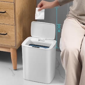 Lixeira Automática 14L Com Sensor Inteligente Sem Toque Luxo Branca Abertura Silenciosa 3 Modos Para Cozinha E Banheiro
