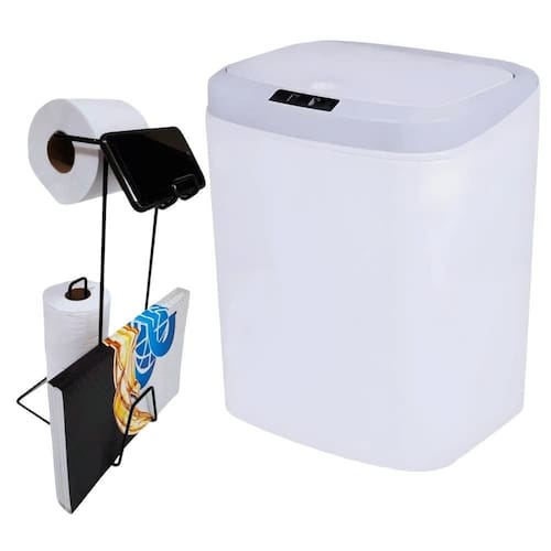 Diferenciais e curiosidadesA lixeira Kala utiliza um sistema de sensor de proximidade que reconhece o movimento em frações de segundo, garantindo resposta imediata e eficiente. Seu sistema de carregamento USB é compatível com adaptadores de tomada e computadores, o que facilita o uso em qualquer local. Já o suporte Evald é fruto de um design funcional pensado para otimizar espaços compactos, com estrutura resistente e acabamento de alta qualidade, ideal para compor banheiros modernos e minimalistas. Finalize a sua escolha com este conjunto inteligente e sofisticado que une tecnologia, organização e estética. Transforme o ambiente com praticidade, inovação e bom gosto, mantendo tudo limpo, organizado e sempre ao alcance.