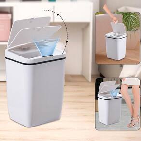 Lixeira Automática Sensor Inteligente Recarregável para Escritório Essa lixeira inteligente abre e fecha a tampa automaticamente. O acionamento de abertura pode ser acionado de 3 formas, sendo: - Indução: Ela identifica sua mão para abrir a tampa; - Toque/Vibração: Você pode tocar o cesto com o pé e ela abre; - Manual: Você aperta o botão e ela abre/fecha.