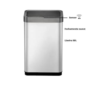 Lixeira automática Lixeira automática sensor abre 50 l aço inox importada. Feche a tampa de forma suave e fácil.