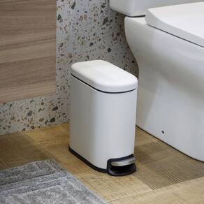 Lixeira Banheiro 5l Branca Aco 29x14cm Com Pedal - Slim