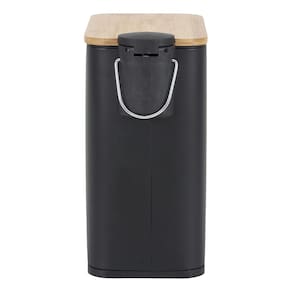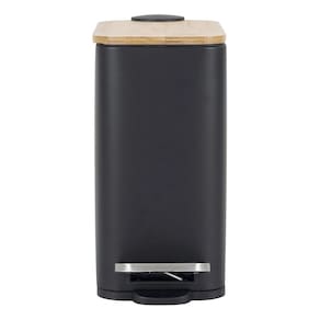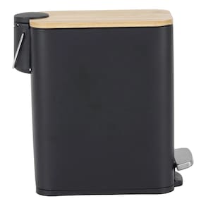 Lixeira Banheiro 5l Preta E Madeira Metal Slim 29x14cm Pedal
