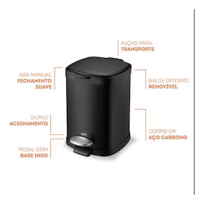 Desenvolvida para oferecer maxima conveniencia, esta lixeira de 6 litros conta com pedal antiderrapante, permitindo o descarte de residuos de forma higienica e sem contato direto com as maos. O balde interno removivel facilita a limpeza e a troca do saco de lixo, garantindo a manutencao da higiene. Sua tampa com fechamento suave e silencioso evita odores desagradaveis e ruidos incomodos, proporcionando um ambiente mais agradavel.