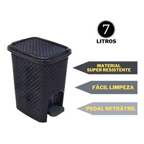 Material: Plástico resistente Dimensões (Largura x Altura x Profundidade): 17,5 cm x 30 cm x 25 cm Peso Líquido: 533g Tampa: Sim, com acionamento por pedal Capacidade: 7 Litros