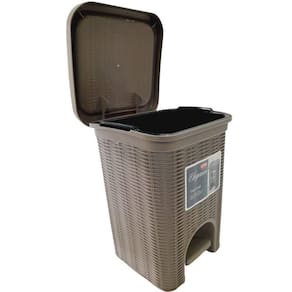 Conta com: abertura com pedal: mais higiene e facilidade no uso. Design trançado sofisticado: combina com qualquer decoração. Compacta e funcional: perfeita para diversos ambientes. Material resistente e fácil de limpar.