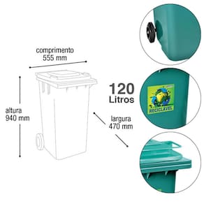 Lixeira Cesto Grande 120 Litros Com Tampa com Alça Cor Verde Se você busca uma lixeira grande, resistente e funcional, essa de 120L é a escolha certa Ideal para empresas, condomínios, áreas de grande circulação e até para uso doméstico.