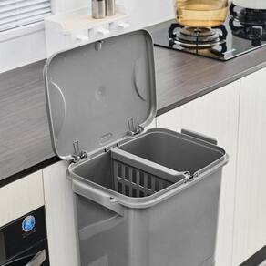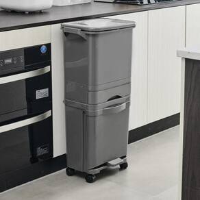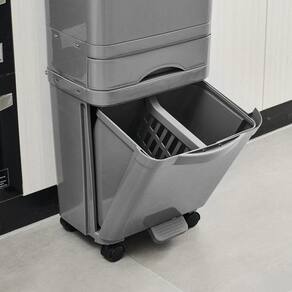 Lixeira com 3 compartimentos de 45 litros na cor Cinza da marca Kleine Wolke. Possui sistema de acionamento manual e rodas para facilitar o transporte. Feita de plastico e metal, e ideal para . Medindo 84,5cm de altura, 29cm de largura e 42,1cm de comprimento, esta lixeira e pratica e funcional. de 3 meses. Importada, a lixeira nao acompanha acessorios. Com design moderno e robusto, a Lixeira Cinza com 3 Compartimentos Kleine Wolke e a solucao perfeita para o descarte organizado de residuos. Marca: Não Informado