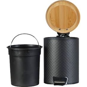 Lixeira Classic Aço Inox Tampa em Bambu 5L 25x20x20cm Preto -