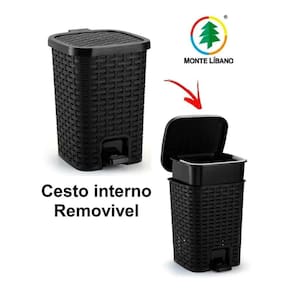 Lixeira Com Cesto Pedal 15 L Banheiro Escritório Lavabo 1987 Lixeira Smart Pedal 15 L Banheiro Escritório Lavabo Com cesto interno1982 A lixeira Smart da Monte Líbano está simplesmente linda Ideal para colocar no seu banheiro, escritório, lavabo, etc, deixando o ambiente moderno e muito mais charmoso.Seu desenho é estilo rattan, com sistema de pedal e amortecedor onde a tampa desce lentamente quando fecha, evitando barulhos indesejados. Possui também um cesto interno, com alça, perfeito para colocar o saco de lixo de maneira que não fique aparente. Além da beleza, é higiênica, fácil e prática de limpar. Capacidade: 15 litros. Dimensões aproximadas: C 24,5 x L 25,5 x A 34 cm . Cor Preta Aproveite a oportunidade e adquira a sua