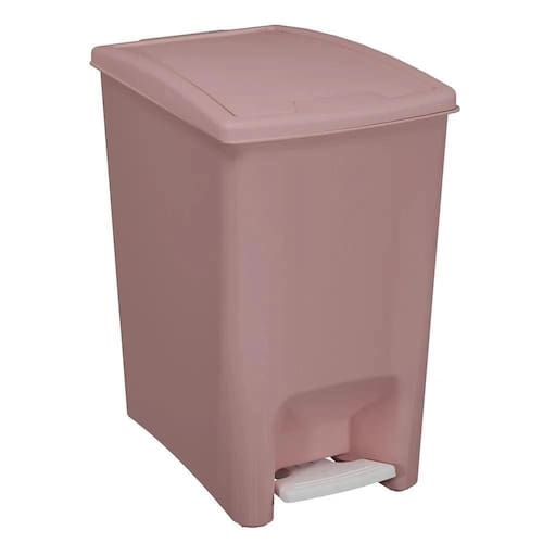 ? Capacidade de 10 litros.? Aro interno que permite que a sacola plástica não fique aparente.? Compacta: cabe em ambientes pequenos.? Possui duas formas de abertura da tampa: pedal e botão de pressão na parte superior.