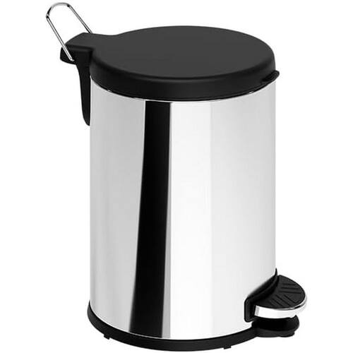 RESUMO: Lixeira com Pedal Flat Brinox Capacidade: 6 L, Medidas: 20 cm de diâmetro por 27,6 cm de altura, Aço inoxidável, Resiste a mais de um milhão de ciclos de acionamento, Pedal com base de aço inox e sistema de aderência no fundo com ventosa, Aro removível para prender o saco de lixo, Tampa em polipropileno na cor Preto Bandeja de contenção removível para acomodar o saco de lixo e conter o vazamento de líquido, 100% reciclável, Produzida no Brasil com fontes de energia 100%.
