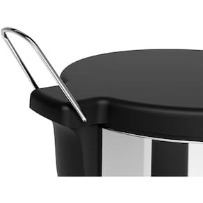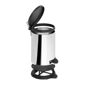 MATERIAIS: a Lixeira com Pedal 6L da Flat/Brinox tem alta durabilidade, é fabricada em aço inoxidável e resiste a mais de um milhão de ciclos de acionamento. O produto conta com alça para transporte e bandeja de contenção removível no fundo para acomodar o saco de lixo e conter os vazamentos de fluídos. O pedal tem base de aço inox e sistema de aderência no fundo, o que deixa a lixeira estável. A tampa e o aro removível para prender o saco de lixo são em polipropileno na cor Preto.