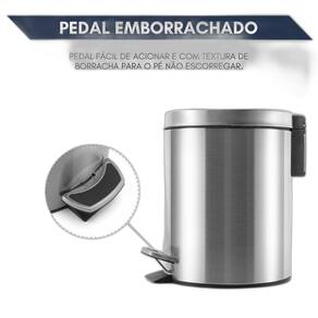 Lixeira com Pedal Inox 3 Litros Banheiro, Cozinha Escritório Você está cansado de lidar com lixeiras de plástico que acabam se rompendo facilmente e não mantém sua higiene
