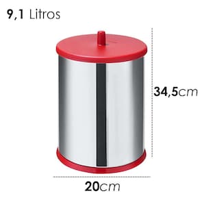 Marca: Martinasso Modelo: 54500V Cores: 54500V/05 (Preto) - 54500V/06 (Branco) e 54500V/08 (Vermelho) Linha: Home Material: Aço Inox e Fundo de Plástico Tampa plástica Capacidade de 9,1 Litros Altura: 34,5 cm Diâmetro: 20 cm Peso: 2,5 Kg