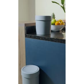 A lixeira é na cor Cinza Frio, um tom neutro e sofisticado, que traz a sensação de tranquilidade, criando um ambiente convidativo e acolhedor.