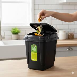 CARACTERÍSTICAS PRINCIPAIS: • Capacidade de 4,5 litros, ideal para pequenos ambientes. • Tampa basculante prática e higiênica. • Design moderno e discreto que combina com qualquer decoração. • Produzida em plástico resistente e de fácil limpeza. • Produto sustentável — fabricado com material reciclável.