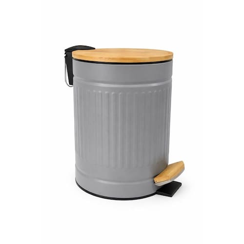 Lixeira Com Tampa e Pedal De Bambu 5 Litros Fluted 20x25cm Jolitex Cinza -