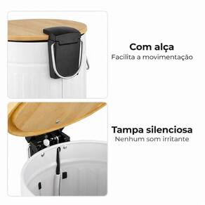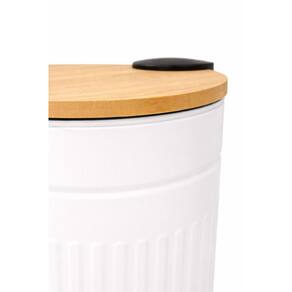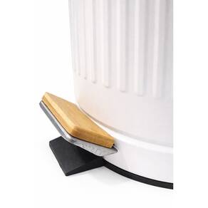 Lixeira Com Tampa e Pedal De Bambu 9 Litros Fluted 23x30cm Jolitex Branca -