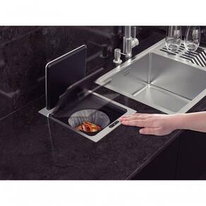 Modernidade e eficiência se unem na lixeira de embutir Tramontina Next com tampa em aço inox e capacidade de 5 litros, pensada especialmente para cozinhas planejadas ou moduladas que valorizam um ambiente bem organizado e com acabamento refinado. Produzida em plástico de alta qualidade, ela conta com tampa e suporte em aço inox e balde com proteção antimicrobiana, que ajuda a manter a higiene ao inibir a proliferação de fungos e bactérias. Seu acionamento por sensor garante mais praticidade, com abertura automática e temporização inteligente: a tampa se fecha sozinha após 5 segundos ou, se aberta manualmente pelo botão, permanece aberta por até 2 minutos, ideal para a retirada do lixo. Pode funcionar tanto com 6 pilhas AAA quanto ligada diretamente à rede elétrica, proporcionando mais flexibilidade na instalação. Uma solução inteligente que traz tecnologia e praticidade ao descarte de resíduos na sua cozinha.