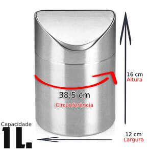 Características do Produto Material de alta qualidade: aço inox resistente e de fácil manutenção Tampa basculante prática: evita contato direto com o lixo Design compacto e moderno: ideal para pequenos espaços Fácil de limpar e manusear