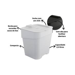 Lixeira de Pia Slim Branco Fosco 2,5 Litros com Tampa Prática Lixeira Para Pia Cozinha Escritório Slim 2,5L Sólido Com Tampa Super Resistente e Compacta