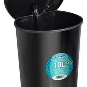 Esta lixeira de 10 litros é feita de polipropileno na cor preta, oferecendo durabilidade e facilidade de limpeza. Com dimensões de 38,5 cm de altura, 20,5 cm de largura e 25,5 cm de comprimento, seu design oval se adapta perfeitamente a diversos ambientes como cozinhas, escritórios, quartos e áreas de serviço. A abertura é acionada por um pedal, proporcionando mais higiene e praticidade. Acompanha uma tampa também em plástico, ideal para manter o conteúdo discreto e seguro. É uma solução eficiente para o descarte de materiais orgânicos, recicláveis, papel e plástico. Marca: Não Informado