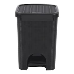 Lixeira com textura em vime 12 litros com mecanismo de pedal injetado em plástico. Prática e muito utilizada para o descarte de resíduos orgânicos e reciclável com total higiene, evitando contato das mãos para abertura do produto. Uso indicado: Chão.