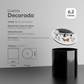 Tampa Decorativa em Resina de Poliéster: A tampa da lixeira é transparente e apresenta uma deslumbrante decoração de Borboleta Vermelha. A decoração é integrada à resina, garantindo que não desbote com a limpeza diária.