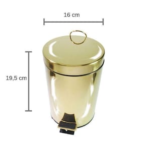 Lixeira Dourada em Aço Inox para banheiro com Pedal 3L - By FinezaMaterial Aço Inox e polipropileno plástico Dimensões do produto Lixeira 25,7x23cmBalde interno removível 19,5x16cmCapacidade 3LPeso aproximado da embalagem com produto - 2kgRevestimento Nitreto de Titânio Dourado Antimicrobiano - Não é pintura. DescriçãoUma lixeira em aço inox com pedal, com capacidade para 3L, acabamento externo e interno emborrachado, com um balde interno removível e revestimento PVD DOURADO de alta durabilidade. Um acessório para banheiro que é portátil e prático. Agrega beleza e funcionalidade aos ambientes, pois possui um acabamento em alto brilho metálico, sem porosidades que evita o acumulo de resíduos. É higiênica e durável. Peça em aço inox de alto padrão.Para abrir basta pressionar o pedal localizado na parte inferior da lixeira.Dica Além de ser uma lixeira portátil e prática para se usar no banheiro, ela também pode ser funcional na sua cozinha. Importante Esse produto não oxida, não enferruja e nem mancha o piso ou bancada com o passar do tempo desde que as recomendações de uso sejam seguidas adequadamente . Produto altamente resistente a umidade. Revestimento antimicrobiano. Contém01 lixeira com pedal01 balde removível 3L Recomendações de usoUse apenas sabão ou detergente e o lado macio da esponja. Outros tipos de produtos, como palha de aço, poderão riscar ou prejudicar o brilho. Enxágue bem cada peça a fim de remover totalmente os resíduos dos produtos de limpeza, que, por serem abrasivos, podem prejudicar o inox. Sempre que possível, use água morna, pois renova o brilho do produto. Após a lavagem, enxugue imediatamente o mesmo, caso contrário, as substâncias químicas da água cloro poderão causar manchas. Na lavagem manual evite atrito entre o produto durante o processo de lavagem e no armazenamento, para mantê-los sem riscos. Não recomendado também, o uso de máquina lava louças.