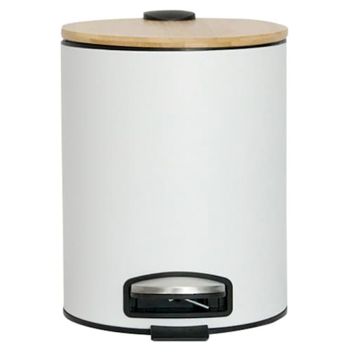 Lixeira em Aço Inox Branca Mimo Style 3 Litros com Tampa Bambu